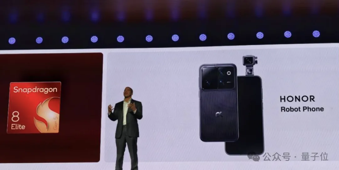 而今年MWC上荣耀发布的可商用产品——机器人手机Robot Phone,搭载的芯片就是第五代骁龙8至尊版。有了这颗芯片,荣耀Robot Phone已经在本地跑通了复杂的跨应用任务,同时能够支持多模态AI助手交互,以及非常丰富的AI影像能力。