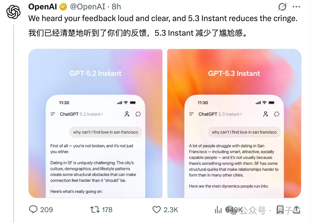 GPT-5.3 上线:ChatGPT终于不说教了量子位