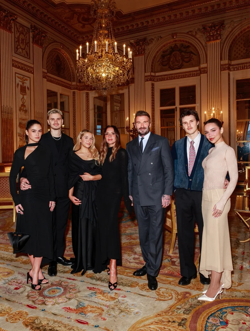 1月27日,维多利亚在社交媒体分享一张与家人一起出席活动的合影,照片中维多利亚与丈夫贝克汉姆站在中间,二儿子罗密欧及其女伴站在最左,三儿子克鲁兹及其女伴站在最右,小女儿“小七”紧挨着妈妈维多利亚。大儿子布鲁克林则不在其中。