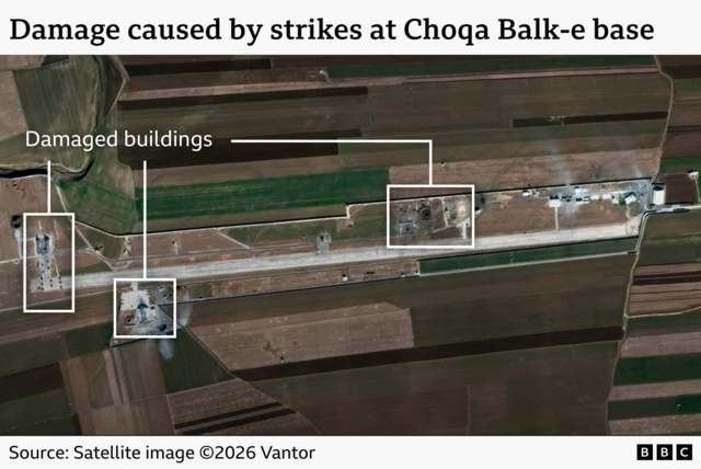 图像,乔卡巴尔克(Choqa Balk-e)无人机基地遭到攻击。