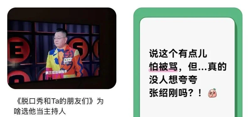 字面意思,就是观众觉得没李诞控场不对味了。诞总在场时,他是整个喜剧场域的“定海神针”与“背锅侠”,演员知道他懂边界也护犊子心里有底,观众信任他总能把冒犯控在让人会心一笑而非皱眉的范畴,而这块张绍刚付航们都很难做到完美替代。