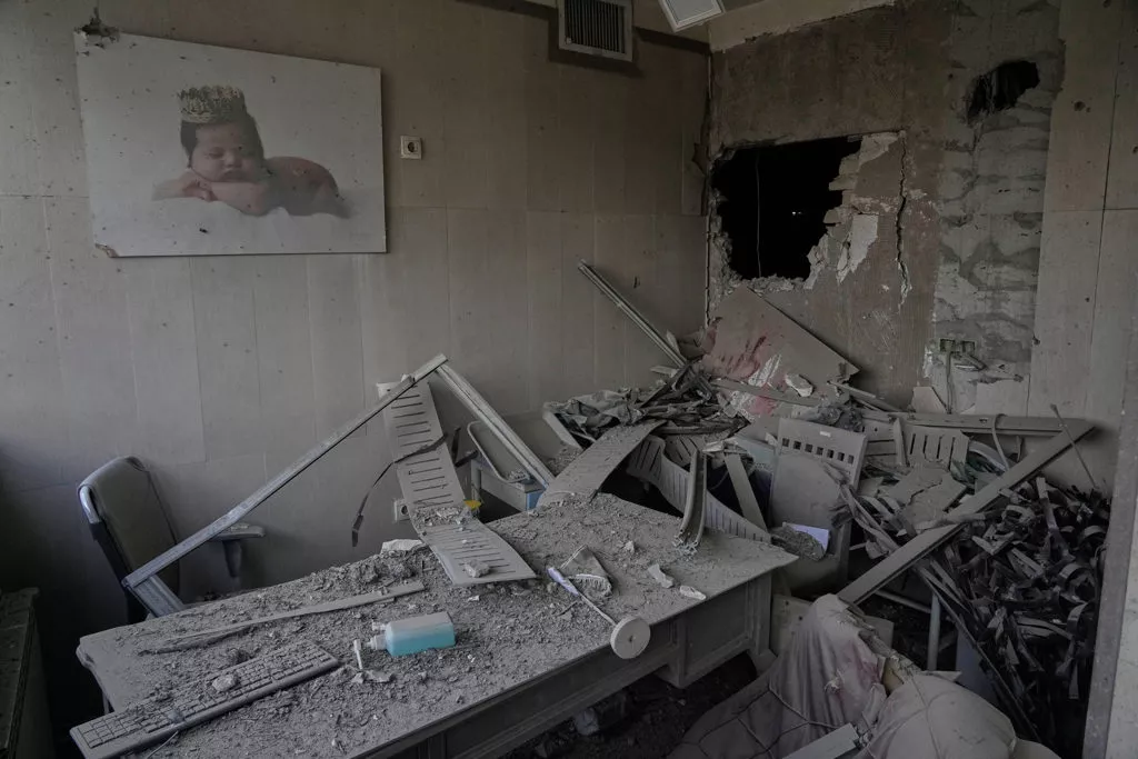 美国、以色列连日联手轰炸伊朗首都德黑兰。图为德黑兰市区甘地医院(Gandhi Hospital)2日遭遇空袭后的惨况,此地距离伊朗国营电视台通讯塔不远。(美联社)