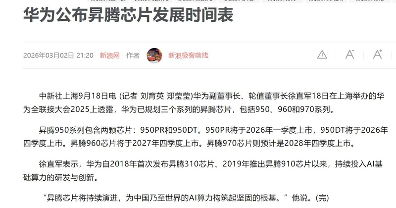 值得关注的是,近期华为打造的推理神器——昇腾 950PR正式浮出水面。按照华为的研发时间表,昇腾950PR将在2026年一季度推出,该芯片将采用华为自研的HBM芯片。