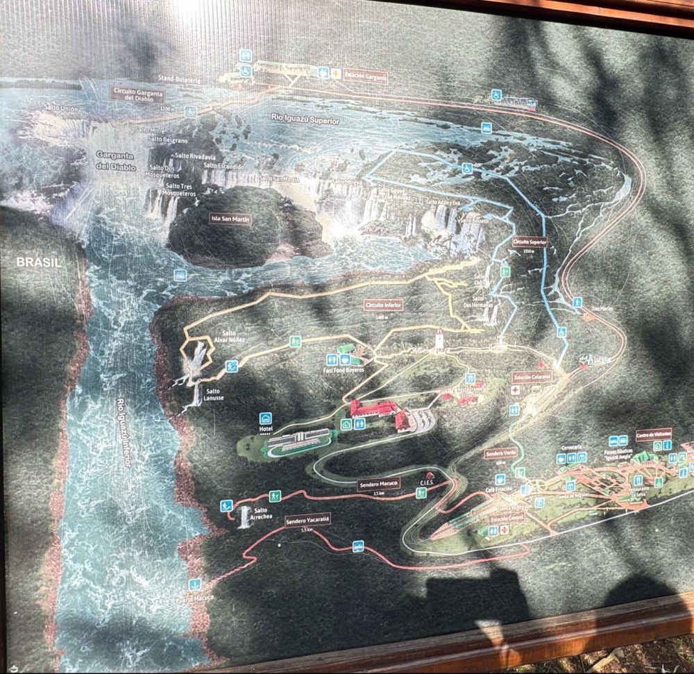 导游将我们带到这块表示牌前,让我们知道,这天的游览的路线:上瀑布 —>下瀑布—>伊瓜苏公园。
