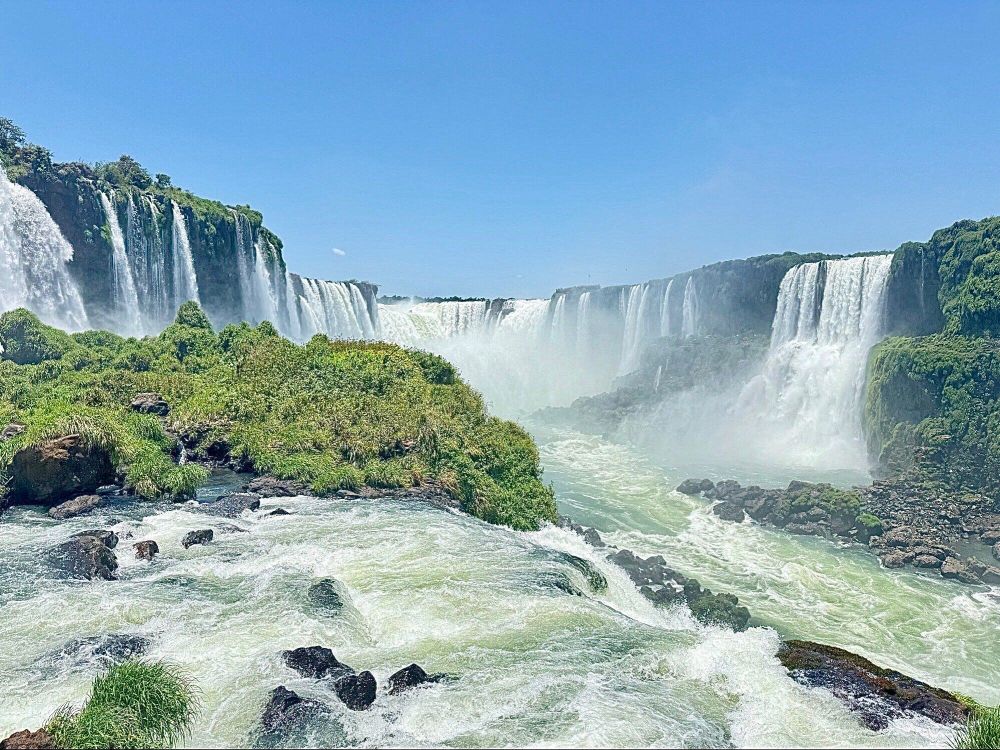 依我看,如果说,尼亚加拉瀑布是一首歌,那么,伊瓜苏瀑布就是一首交响曲,由多个乐章组成。它不仅比尼亚加拉瀑布高,且像是一个系列,由超过275个独立瀑布组成,一幅幅,横跨2700米,最高达82米。