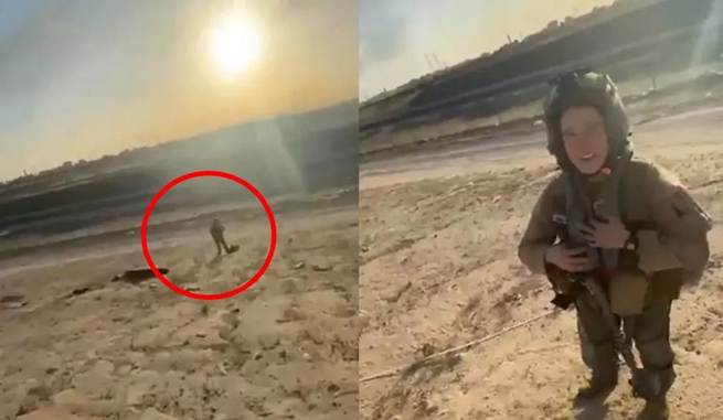 科威特人员靠近救援时,弹射后落地的女飞官确认安全后露出灿烂的笑容。