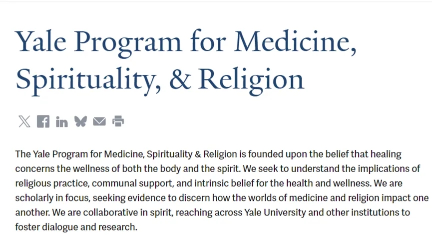 耶鲁大学医学院便是其中的一个典型例子,该校设有医药、精神性与宗教的研究项目,旨在从学术角度探讨这些领域的交集,并为学生提供研究资助。