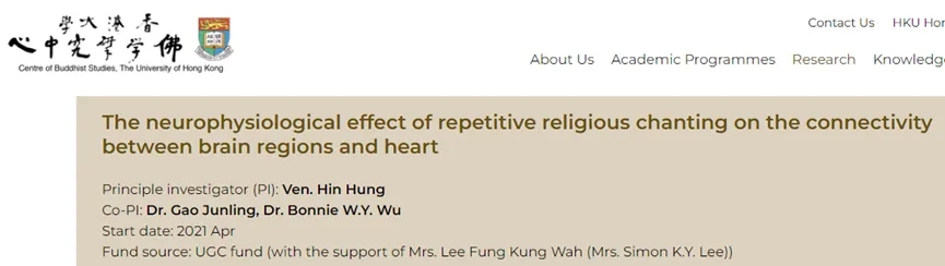 这所佛学研究中心亦有一个进行中的研究项目,探讨重复的宗教诵经对大脑区域和心脏连接的神经生理学影响。(如下图)