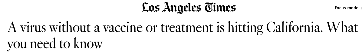 加州检测到一种呼吸道病毒LA Times网站