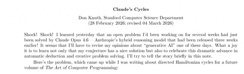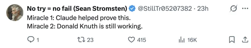 这直接让向来对生成式AI持保留态度的高德纳在文章最后写道:“为Claude脱帽致敬!”