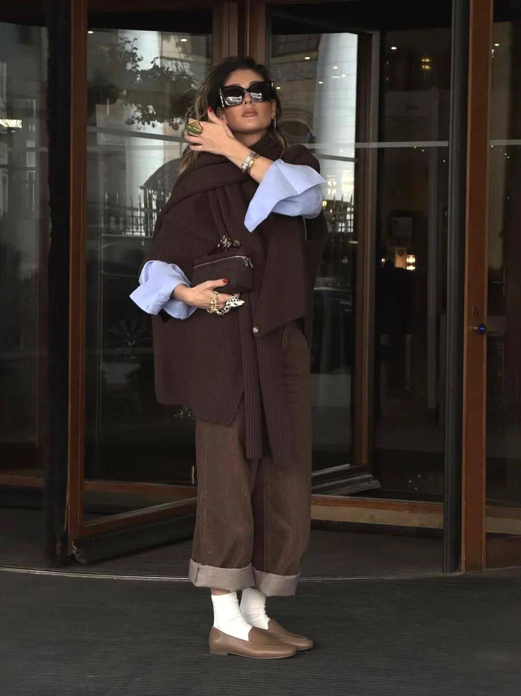 这或许是这几年街拍,棕色乐福鞋频频出现的原因~它被越来越多时髦女士喜爱,并将其作为日常必备的一件单品。