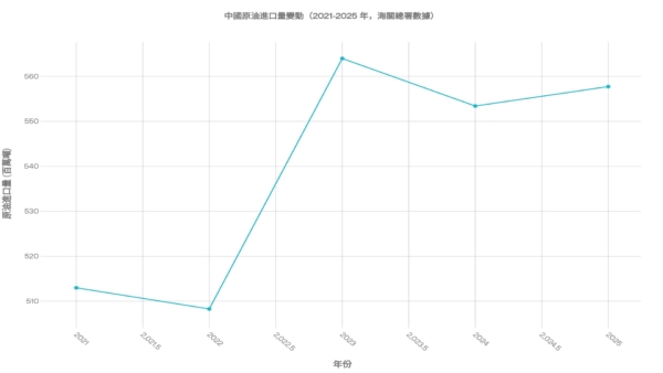 根据中共官方公布的数据,中共在2025年原油进口量达5.57亿吨,折合日均约1,120万桶(1吨约等于7.33桶),同比增长约4.4%。这一规模已超过沙特阿拉伯日均产量约950万桶的水平。