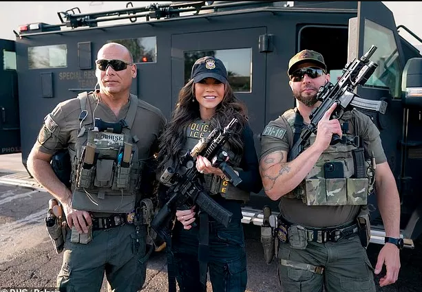 与此同时,她还因多次拍摄宣传照片而受到批评。照片中她身穿防弹背心、全妆出镜,手持枪械与执法人员合影,一些媒体甚至给她起了“ICE Barbie”的绰号。
