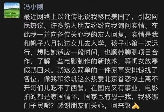 冯小刚辟谣:没移民美国,就是来送孩子读书