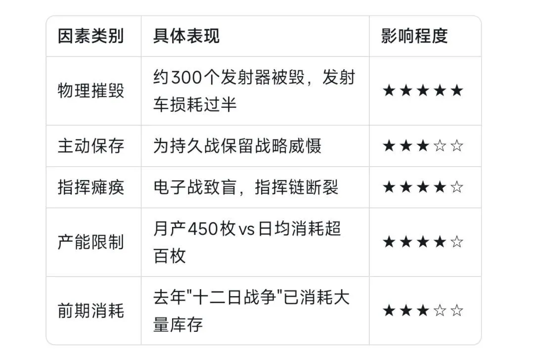 综合来看,伊朗导弹与无人机发射量下降是以下因素的叠加结果: