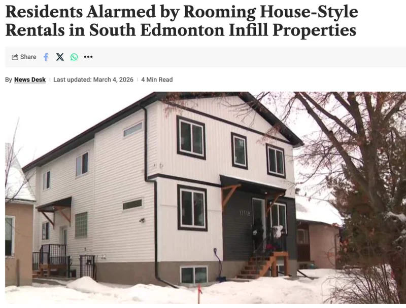 争议主要集中在大学南侧的 McKernan 与 Belgravia 社区,这两个社区距离阿尔伯塔大学不远,一直是学生租房需求较为集中的区域。一批打着“多户住宅”旗号的新建插建项目,正以群租屋(rooming house) 的模式悄然运营。