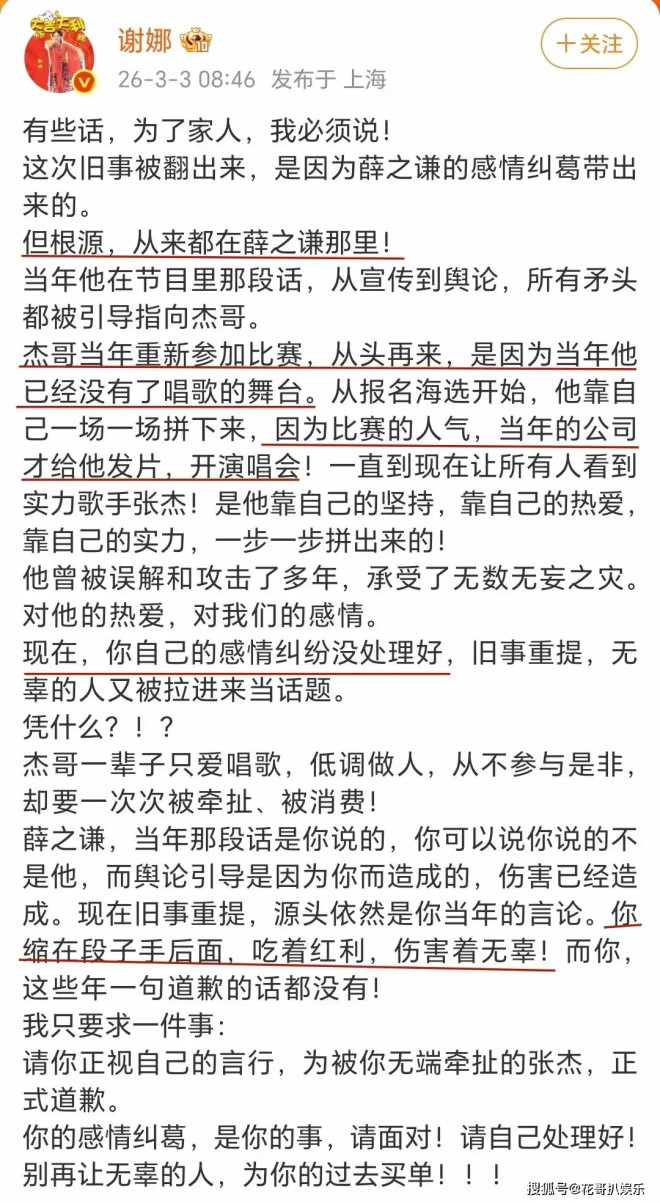 这场闹剧的开端,源于李雨桐持续发酵的爆料,言辞犀利直指薛之谦私生活混乱,舆论愈演愈烈之际,谢娜突然下场站队,毫不犹豫加入战局。