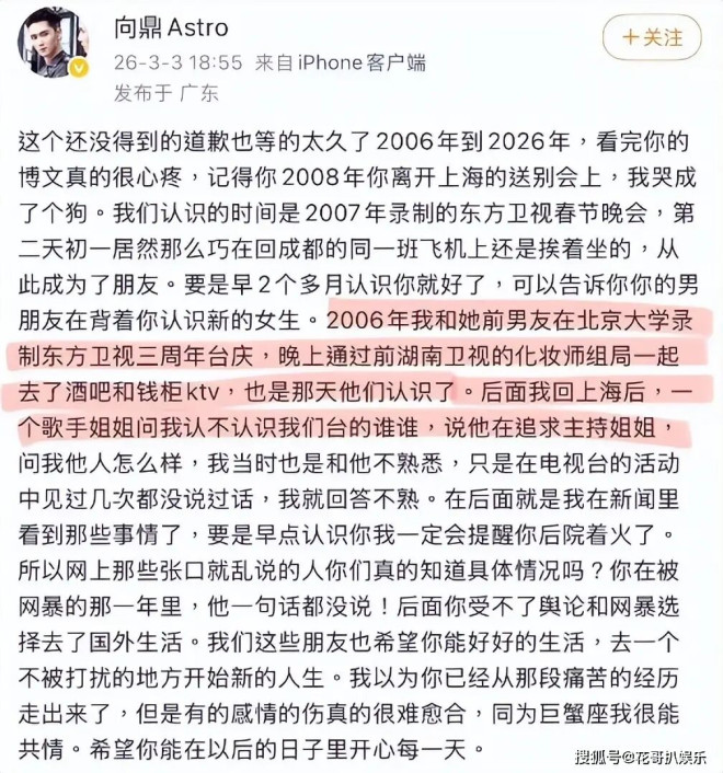 同为圈内人的向鼎挺身而出,他说2006年就亲眼看见张杰私下追求谢娜,两人关系早已不一般,并非粉丝口中2007年才相识。更劲爆的是,向鼎直言张杰能登上《快乐男声》舞台并一路爆红,全靠谢娜在背后精心规划事业路线,从资源对接到舞台曝光,每一步都有谢娜的助力。也就是说2006年,张杰和段曦还没有完全分手的时候,就已经开始追求谢娜,并且借着谢娜的助力参加比赛脱颖而出。