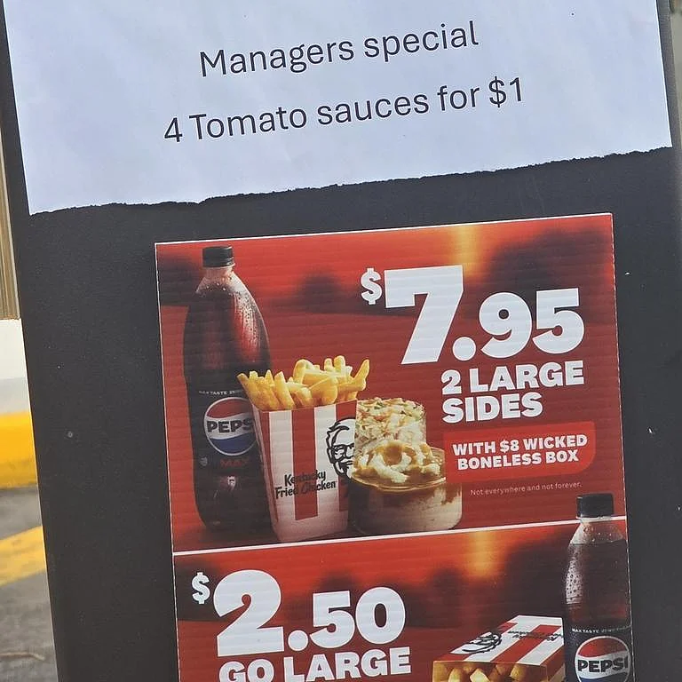 他表示,在加拿大和美国,饮料可以免费续杯,酱料通常也免费提供,但在澳洲,一小杯番茄酱却要60澳分。
