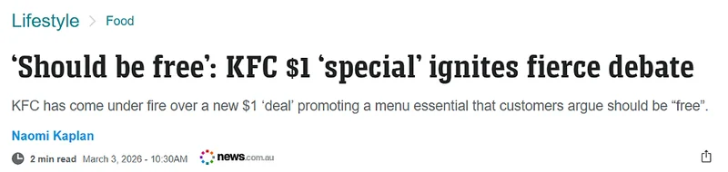 最近,澳洲一家肯德基因为一张“1刀促销海报”被网友喷上热搜。