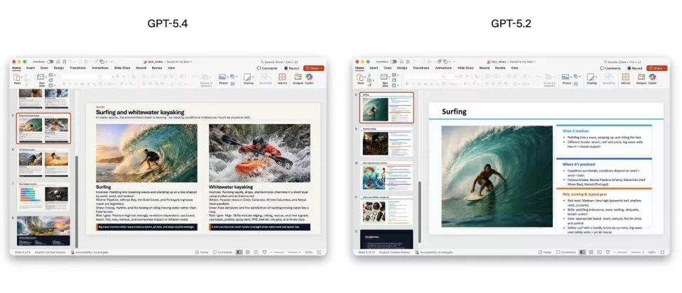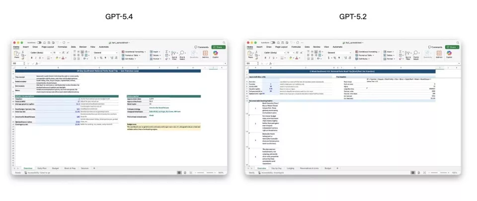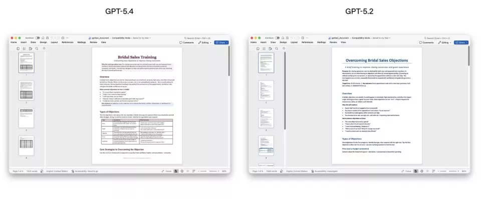 这意味着GPT‑5.4在处理复杂文档内容时,能够更好地理解结构、保持信息完整,同时减少错误,为企业办公、数据分析和报告生成提供可靠支撑。