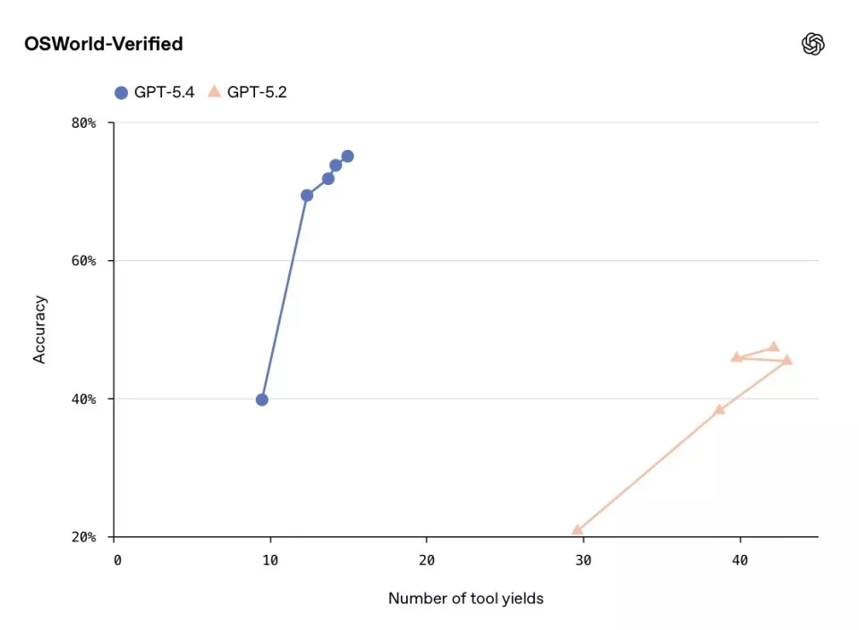 GPT‑5.4与GPT‑5.2在OSWorld-Verified测试中的表现