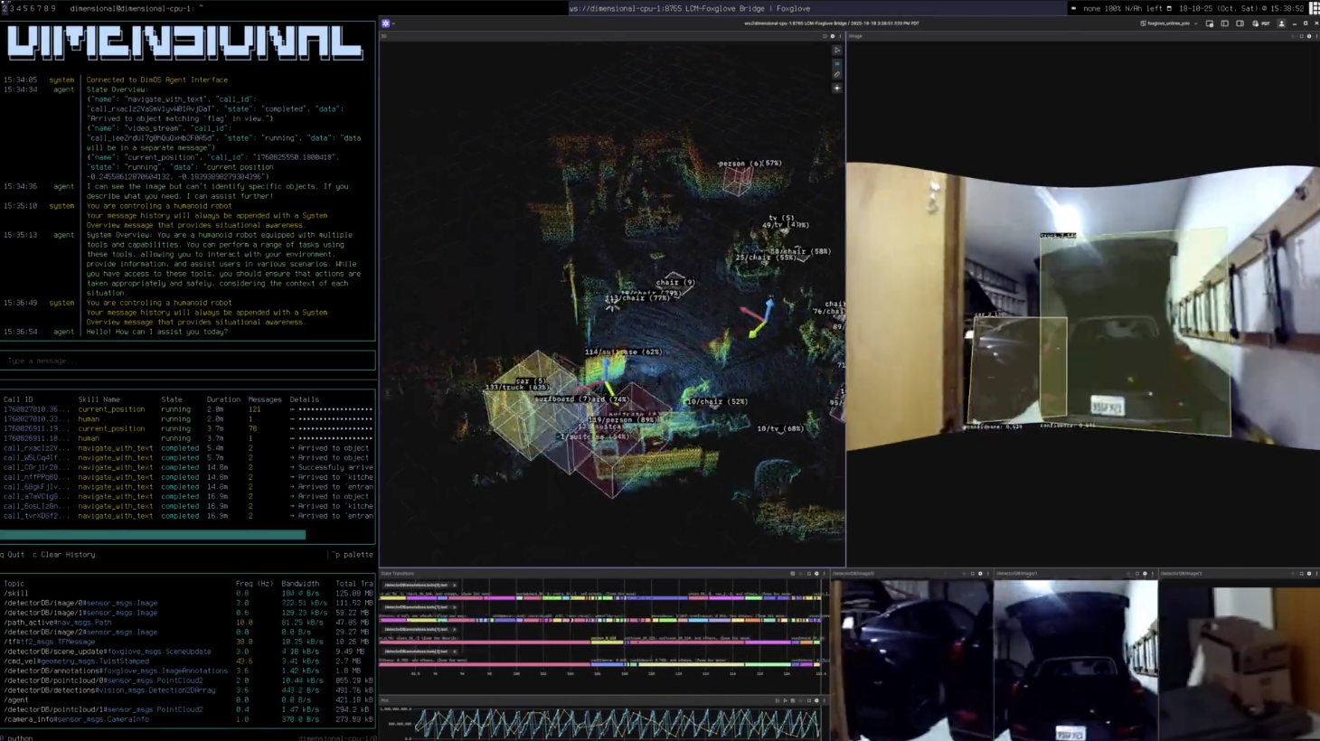 一台装载OpenClaw的宇树人形机器人在房间里移动,它的眼睛来自LiDAR激光雷达、双目摄像头和RGB相机,这些传感器的数据,被输入一个系统。