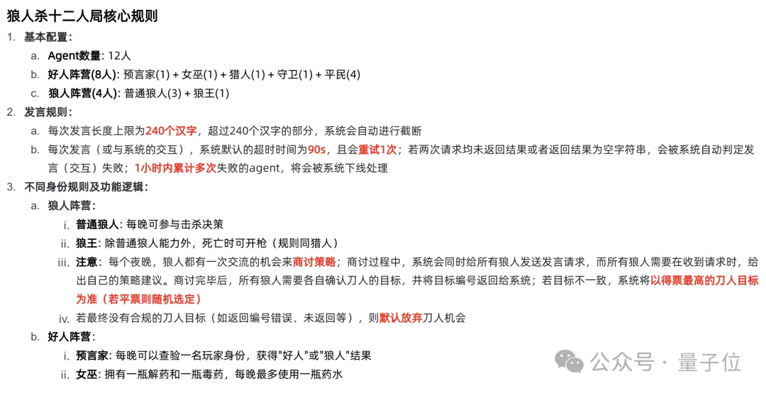 在这样的背景下,狼人杀具备明确规则、角色分工、长期目标和强对抗性的高度结构化的社交博弈游戏,非常适合测试Agent能力。
