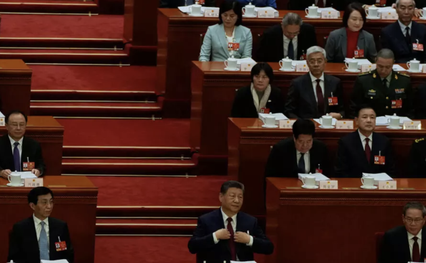 不过,习近平在听取工作报告时似乎相当放松。在李强发言时,许多与会者低头看着手中文件,一边翻页跟着讲稿内容,但习近平则平静地环顾四周,而不是逐字查看讲稿内容。