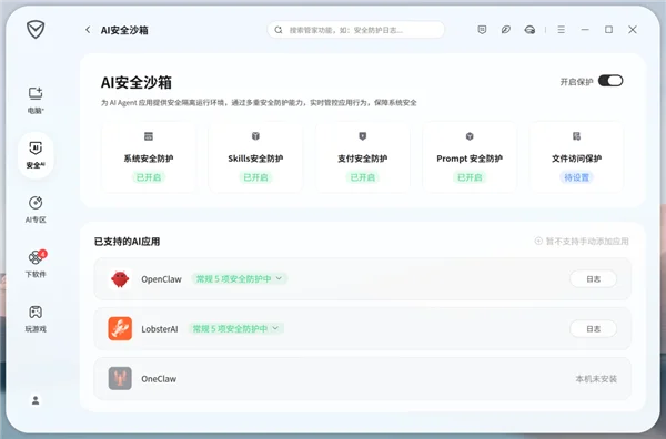 腾讯电脑管家18.0全新版本推出「AI安全沙箱」功能,无需复杂配置、一键即可为OpenClaw等Agent工具开启隔离运行环境,通过系统级隔离与行为监测,可以对插件调用、文件访问和潜在风险操作进行全程防护。