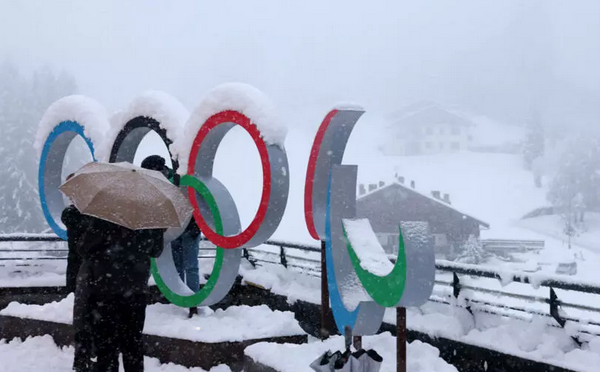资料图片:2026年米兰残奥会奥运五环和会徽概览,科尔蒂纳。 © Claudia Grec / Reuters