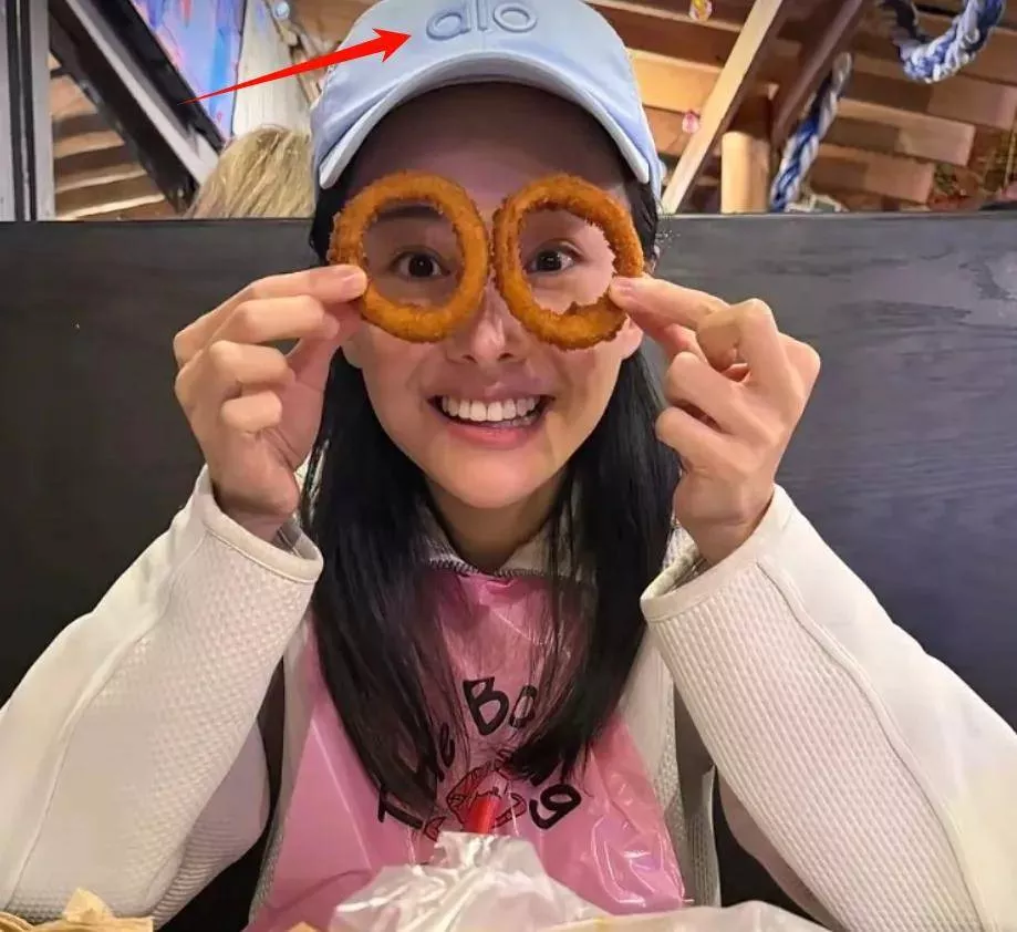 在快餐店吃饭,戴的帽子也是国外轻奢品牌,不少韩星都有同款,售价也不便宜。