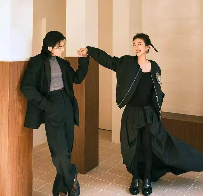 他们两人的服装设计既简洁又时尚,完全没有让人觉得是有意为之的搭配,反而更多地体现了多年夫妻之间自然而然形成的默契。这种毫无波动的甜美表情,远比故意展示恩爱要显得更为高贵。