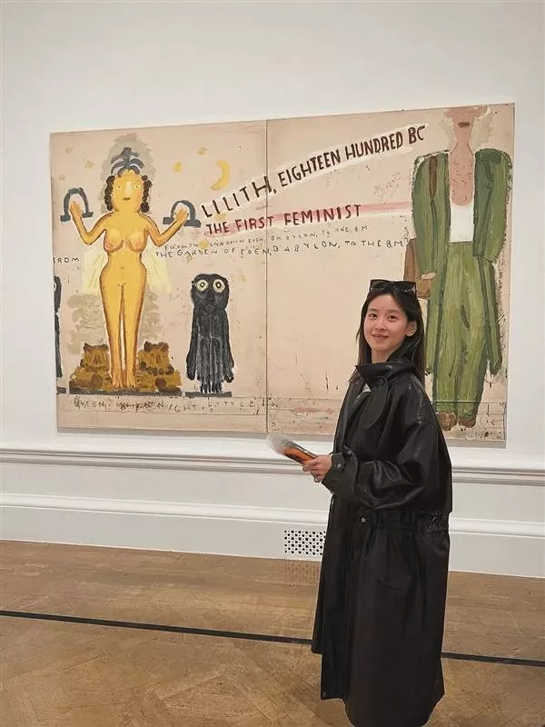 照片里的她正在参观英国皇家美术学院的艺术展,活力满满,笑容满面。