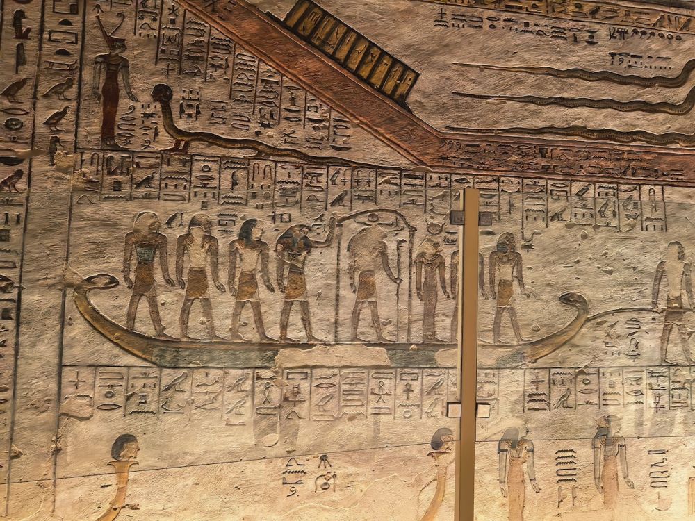 《冥界之书》(Book of Amduat)中的场景,法老灵魂登上太阳船,开启通往冥界的旅程
