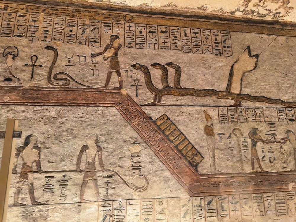 墙壁上雕刻《门之书》(Book of the Gates)和《冥界之书》(Book of Amduat)内容,指导法老穿过冥界,获得重生。