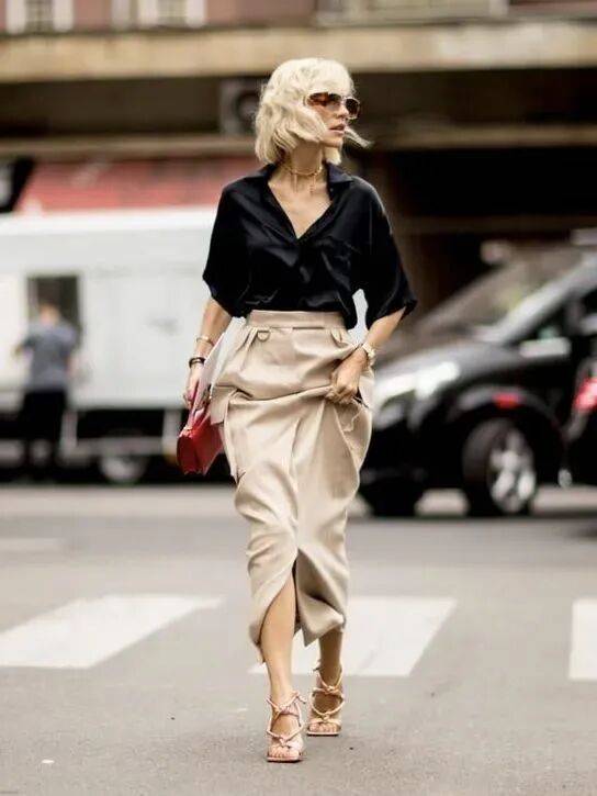 黑色针织背心,显瘦度直接拉满也能倍感时髦,搭配一件卡其色工装半裙,恰是完美的平衡,下角塞腰里穿出不费力的高级感,搭配一双黑色高跟鞋,在随性与精致间找到了完美的平衡。