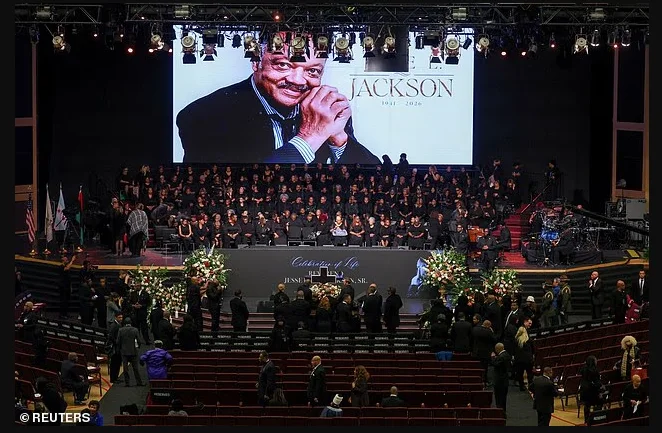 葬礼当天,芝加哥南区的教堂外排起长队,许多民众来到现场送别这位民权运动象征人物。教堂外的大屏幕播放着杰克逊历史性的演讲片段。