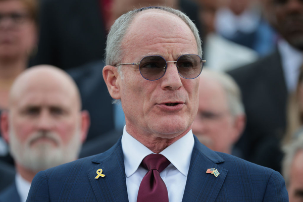 2025年6月10日,以色列驻美国大使Michael Leiter在美国国会大厦外举行的悼念守夜活动上讲话。(Kayla Bartkowski/Getty Images)