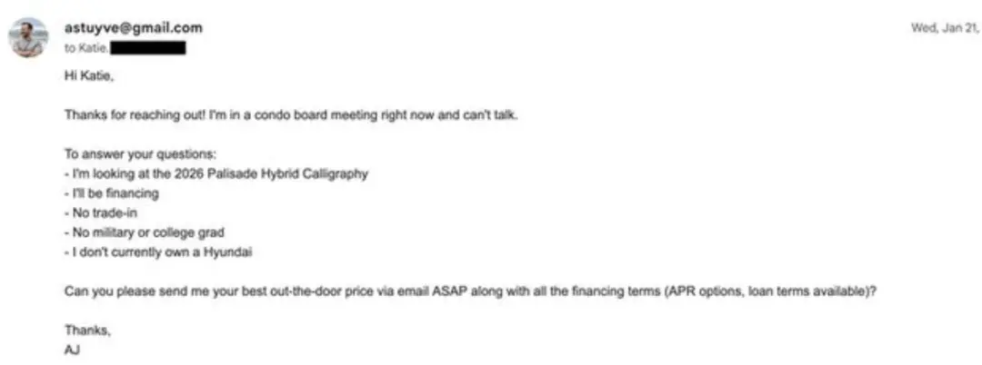 经过三天的自动化邮件谈判,最终成交价比工程师预想的要低了整整7000美元。