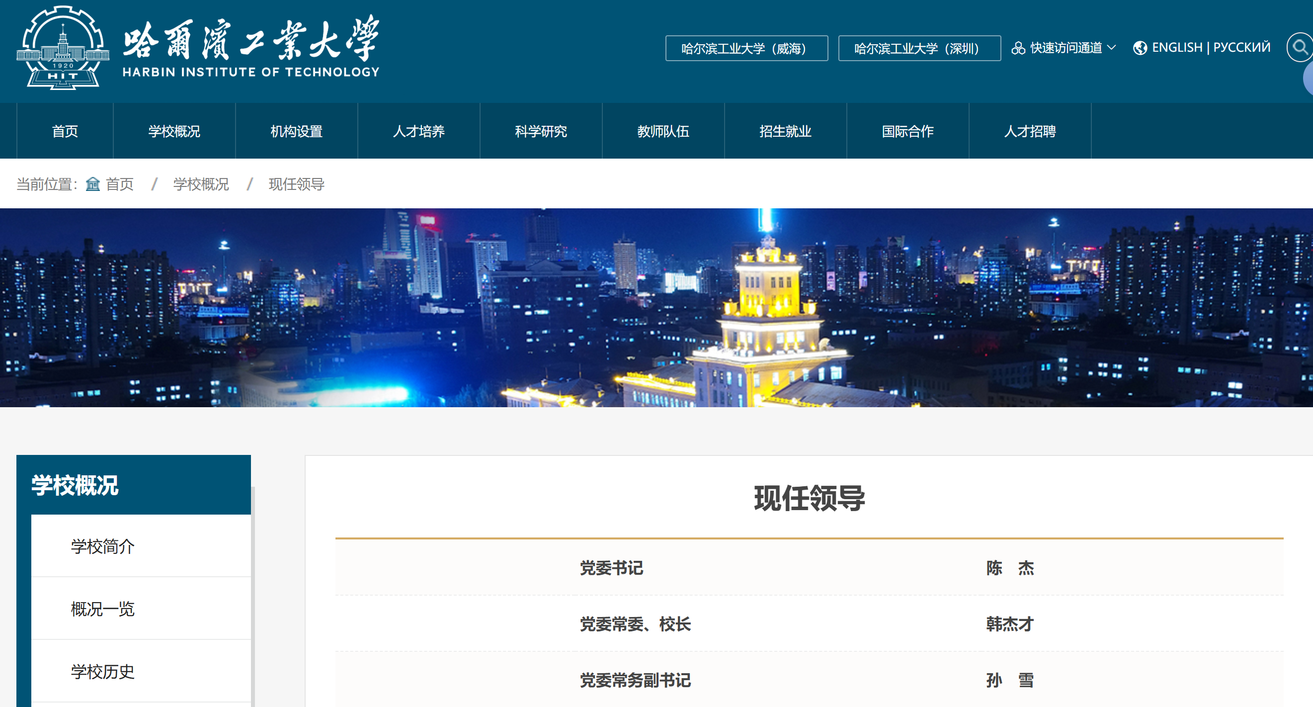 哈尔滨工业大学领导班子调整哈尔滨工业大学