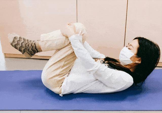 做法:平躺在床上,垫个薄枕头。单腿弯曲,双手抱住膝盖,轻轻向胸前拉,保持15–20秒,换另一条腿。以后可以尝试双腿一起抱膝,动作依然要缓慢、呼吸均匀。每侧重复3–5次,每天1–2次,尤其适合久坐下班后做一做。
