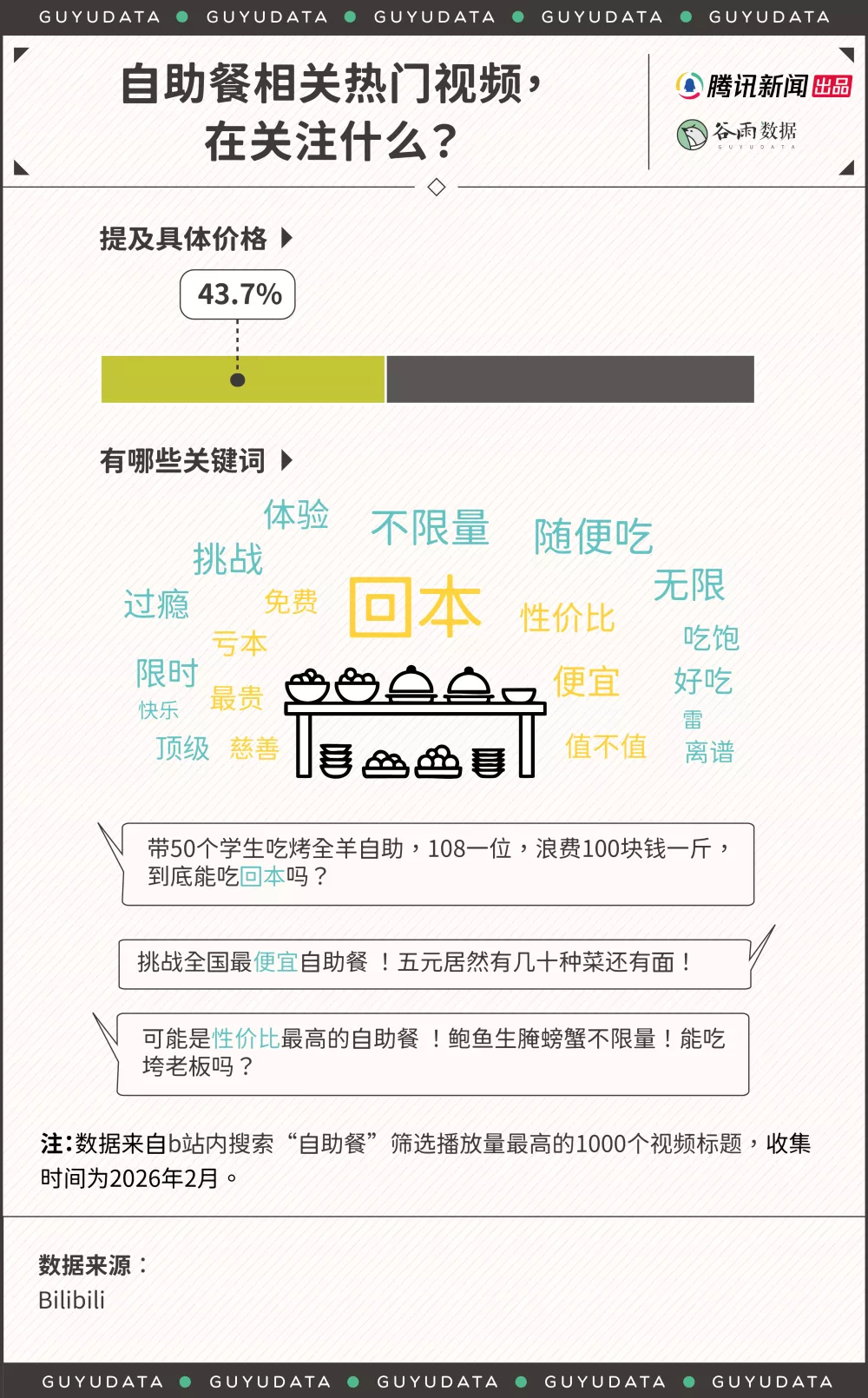 社交平台上,以“自助餐”为关键词,超过四成的热门视频都在标题直接点明了价格。