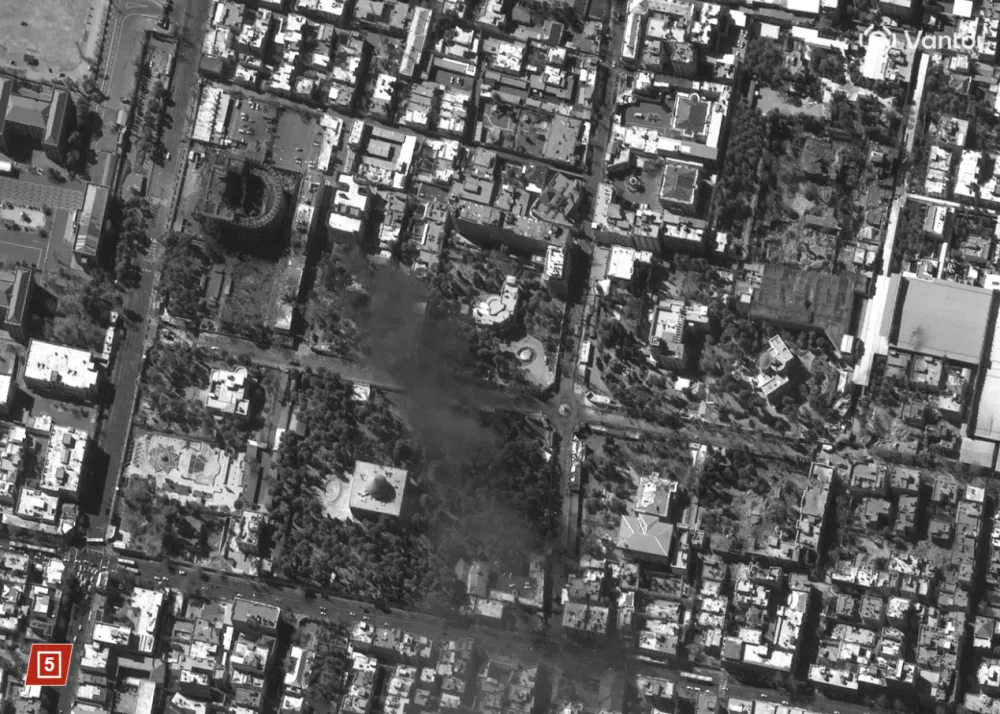 ■轰炸后高清无码的卫星图,还可见到飘起长长的浓烟带。