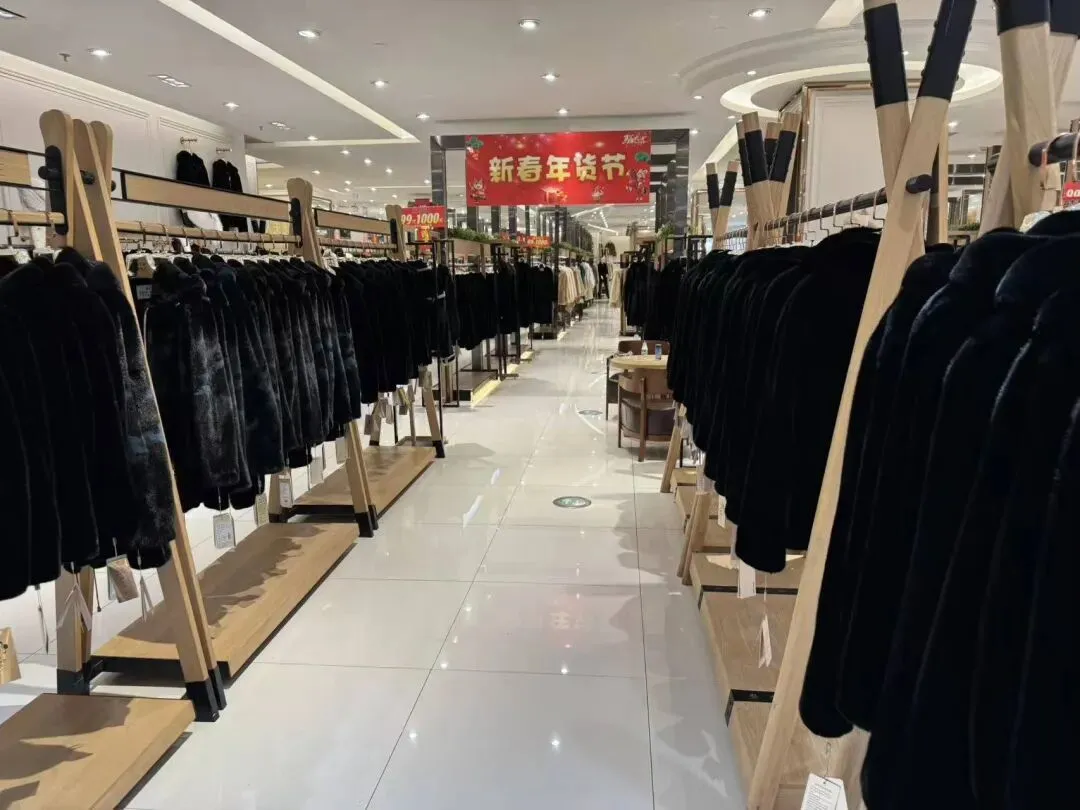走进宽敞的店铺,码得整齐的貂皮大衣会最先带来视觉冲击,貂毛在灯光下柔顺发亮,时髦的电子音乐在店里回响。但不必害怕貂皮区昂贵的价格标签,反正佛系的东北店员也不会主动上前询问你。