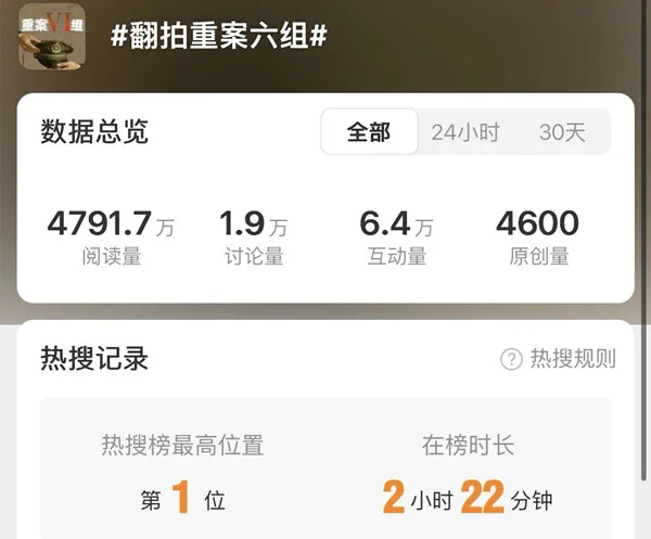 近日,高分国产刑侦剧《重案六组》毫无预兆地冲上了热搜第一。