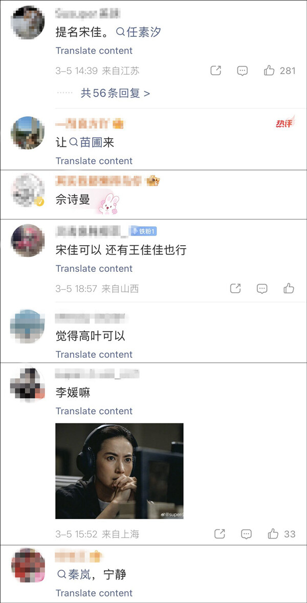 而部分网友已经开始提名:宋佳、苗圃、任素汐、李媛、秦岚、佘诗曼、王佳佳、高叶、宁静……