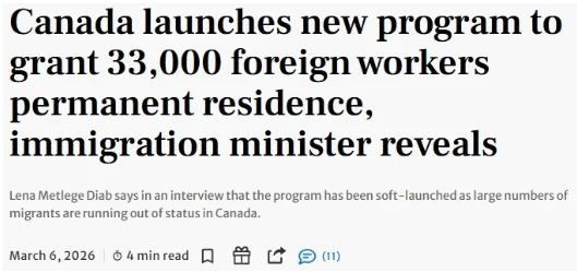 3.3万个PR名额分两年发放这项计划其实早在去年11月就已经宣布,但之后几个月政府几乎没有再公布任何进展。直到本周,移民部长首次确认:“我们其实已经启动了这个项目。”不过,目前政府仍未公布具体申请方式、申请时间或已有多少人申请。部长表示,关于该计划的更多细节和进展情况,将在今年4月公布。根据政府此前公布的移民计划,这条新的TR-to-PR通道将在2026年和2027年之间发放,总计提供3.3万个PR名额。与传统移民项目不同,这条通道独立于现有移民体系,不占用快速通道(Express Entry)和省提名项目(PNP)名额,而是一个全新、额外的“特赦级”PR路径。目标人群主要包括:已经在加拿大工作的临时外籍工人在社区生活稳定长期报税并缴纳税款为加拿大经济作出贡献的人政府文件还特别提到:农村地区劳动力将被重点考虑。