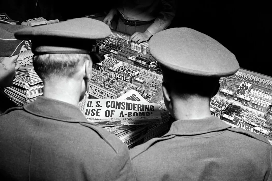 1950年,士兵们正在看报纸上关于朝鲜战争的新闻。Bettmann Archive, via Getty Images