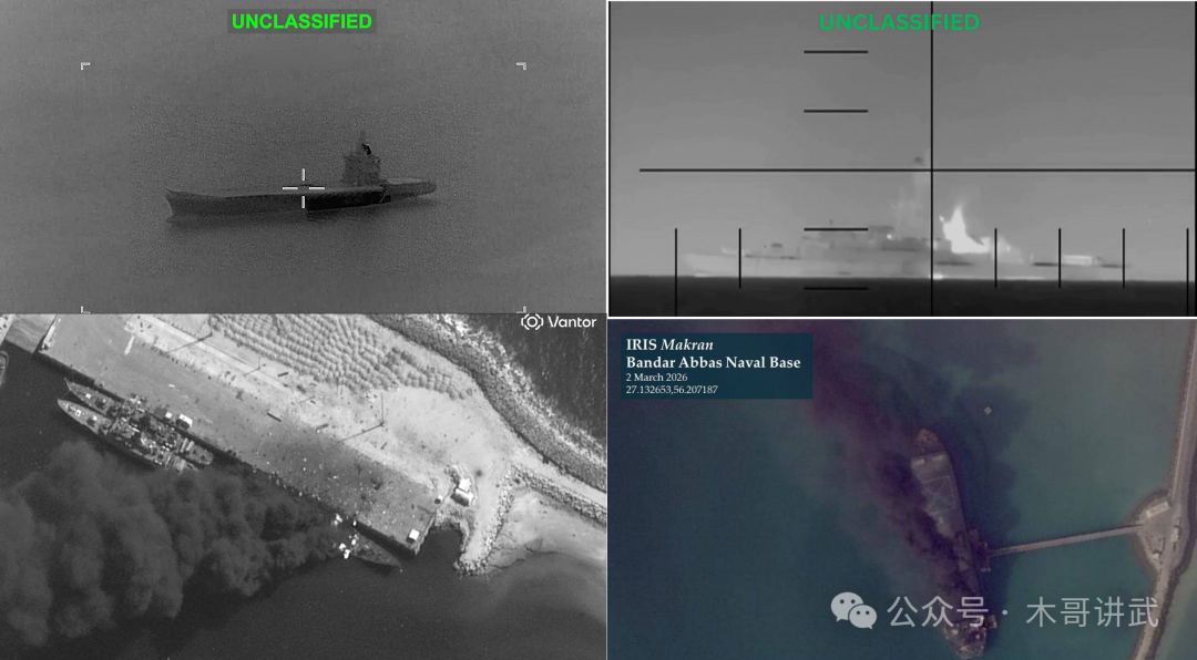 根据美军的战报,伊朗海军已经有 43 艘舰艇被摧毁,港口也遭到了毁灭性打击。美军中央司令部 3 月 6 日在社交平台 X 上发表声明确认,自军事行动以来,美军已击沉或摧毁 43 艘伊朗海军舰艇,打击伊朗目标总数超 3000 个微博。虽然无法完全证实这个数字的准确性,但是伊朗海军绝大部分主力舰被击沉是没有疑问的,因为有作战影像为证。